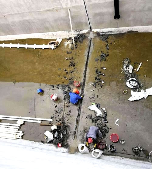 ● 為確保施工質(zhì)量,在施工堵漏前必須進(jìn)行現(xiàn)場(chǎng)調(diào)查,摸清現(xiàn)場(chǎng)施工情況,分析滲漏水的原因,查清漏水部位、裂縫、裂紋或穿孔的寬度、長(zhǎng)度、深度和貫穿情況。